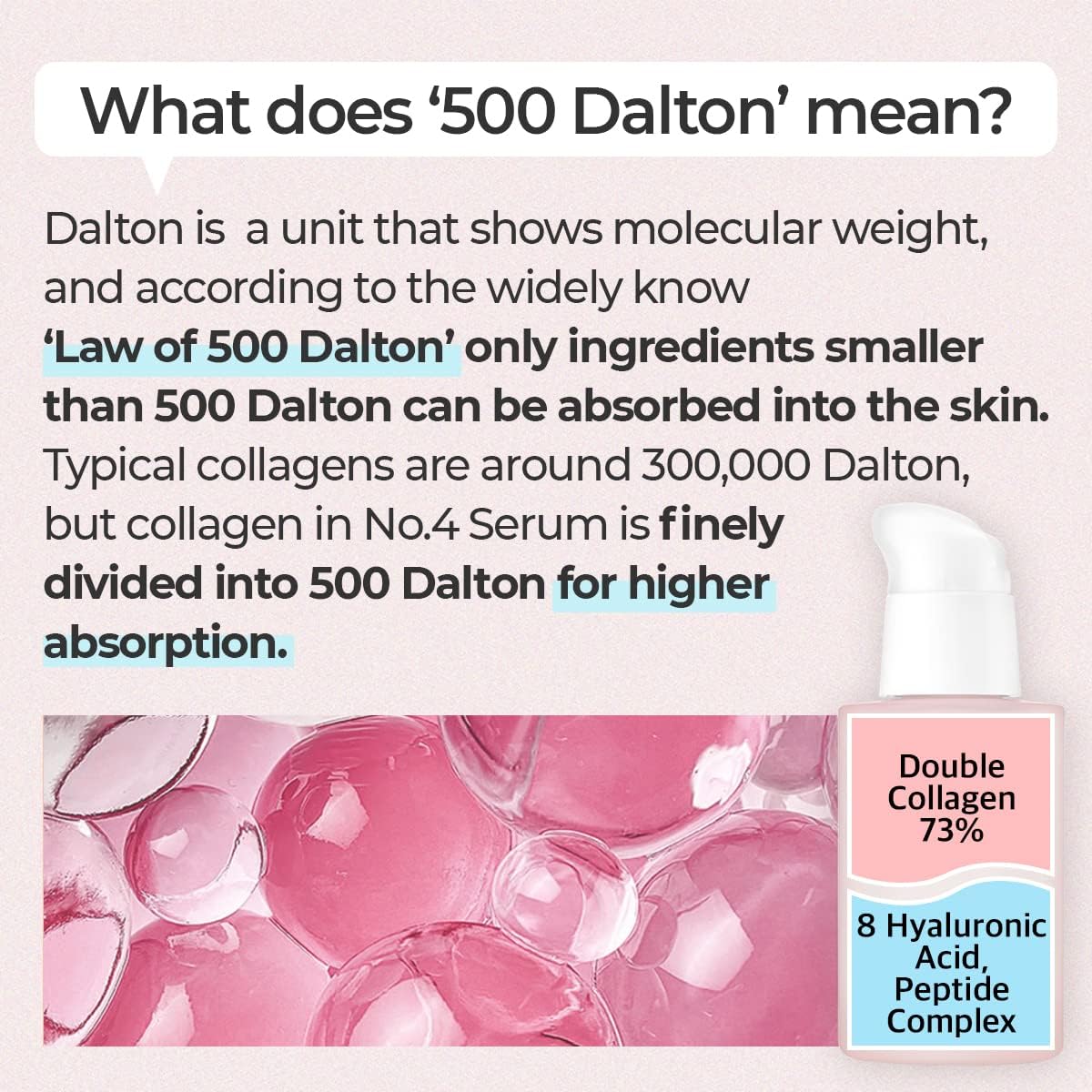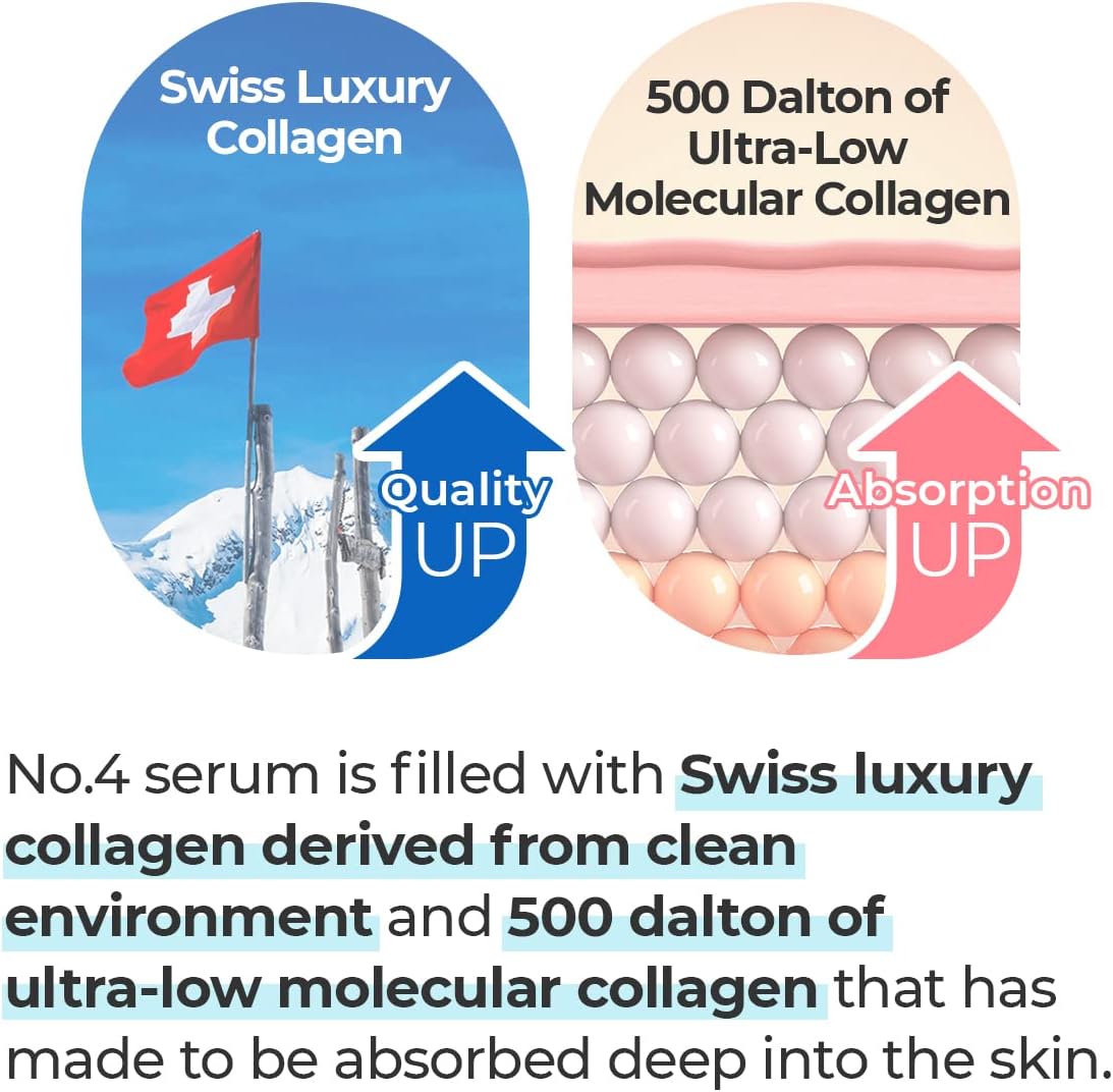 No.4 Collagen 73% Pudding Serum is enriched with 73% of high-quality swiss luxury collagen, which is ultra-low molecular weight (500 Dalton) collagen to enhance the skin’s ability to absorb it effortlessly. Further, its hypoallergenic formula contains 8 types of hyaluronic acid and elastin to increase skin elasticity and moisture level.